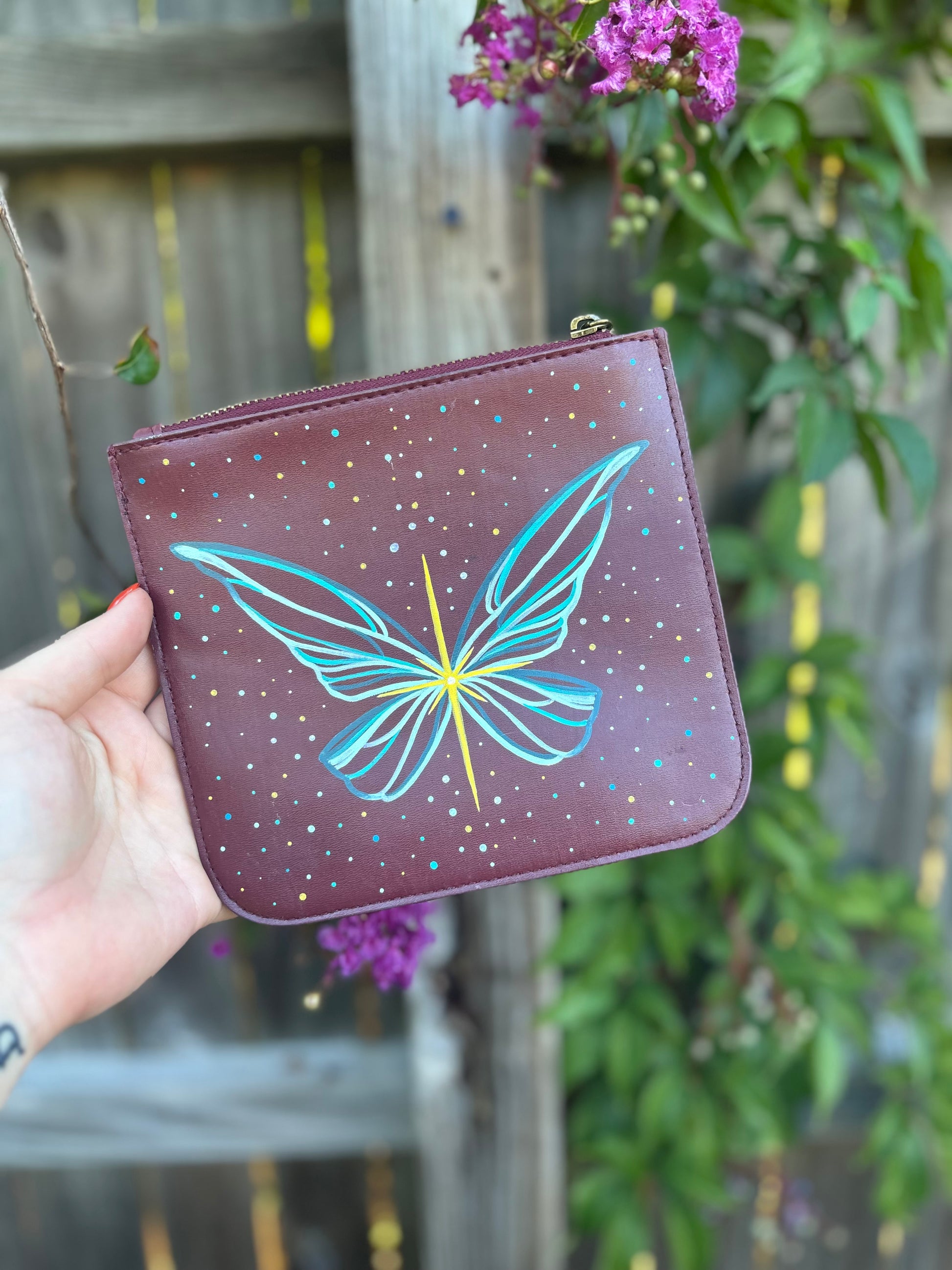Out foraging? Keep your crystals, petals, and unmentionables in this small bag decorated in twinkling faerie wings.